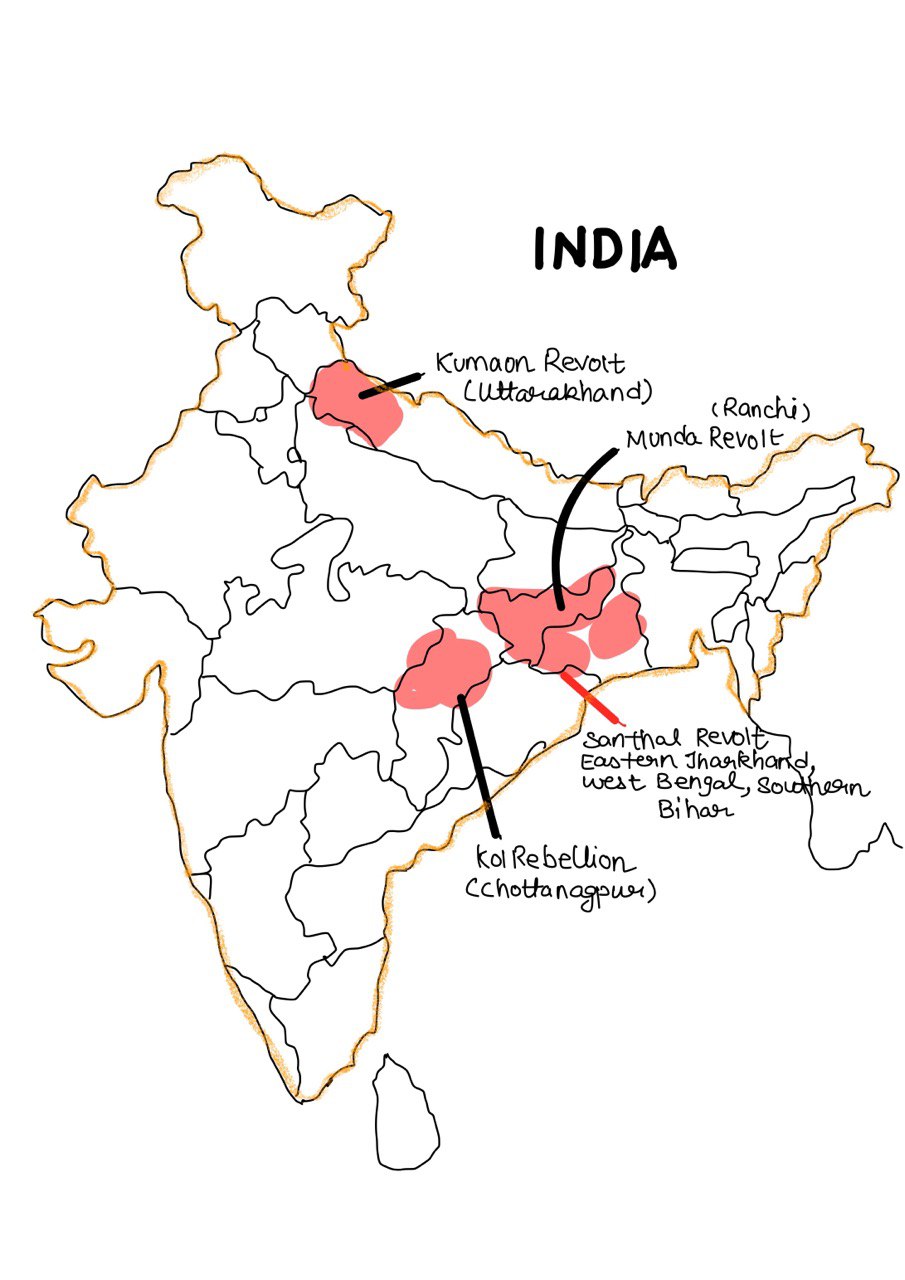 - Santhal Rebellion (1855–56): Against exploitation by moneylenders and British officials.
