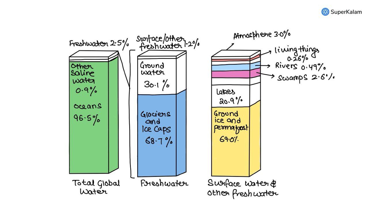 On the planet earth, most of the freshwater exists as ice caps and glaciers. Out of the remaining freshwater, the largest proportion