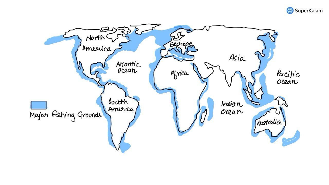 The most important fishing grounds of the world are found in the regions where warm and cold oceanic currents meet.