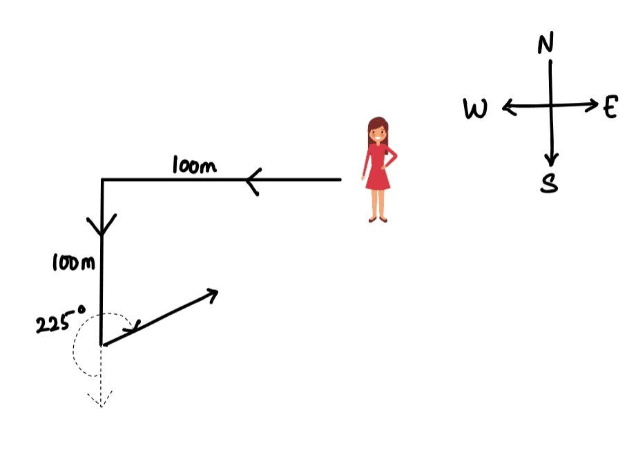 A person walks 100 m Westward, then turns left and walks 100 m. He then takes turn clockwise. In which direction is he walking now?